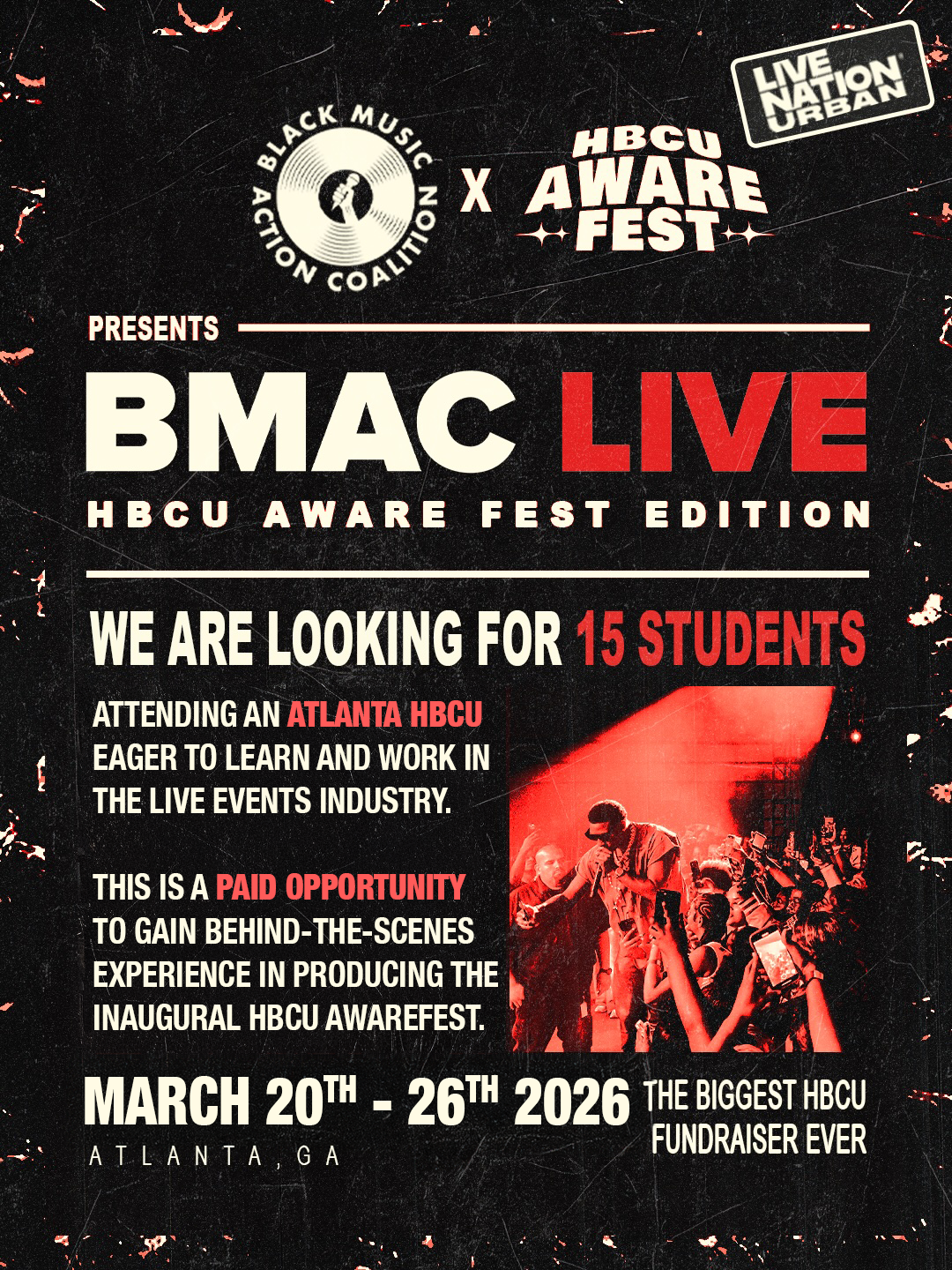 Black Music Action Coalition, Student Freedom Initiative, and Live Nation Urban present a collaboration between the BMAC LIVE Accelerator Program and HBCU AwareFest